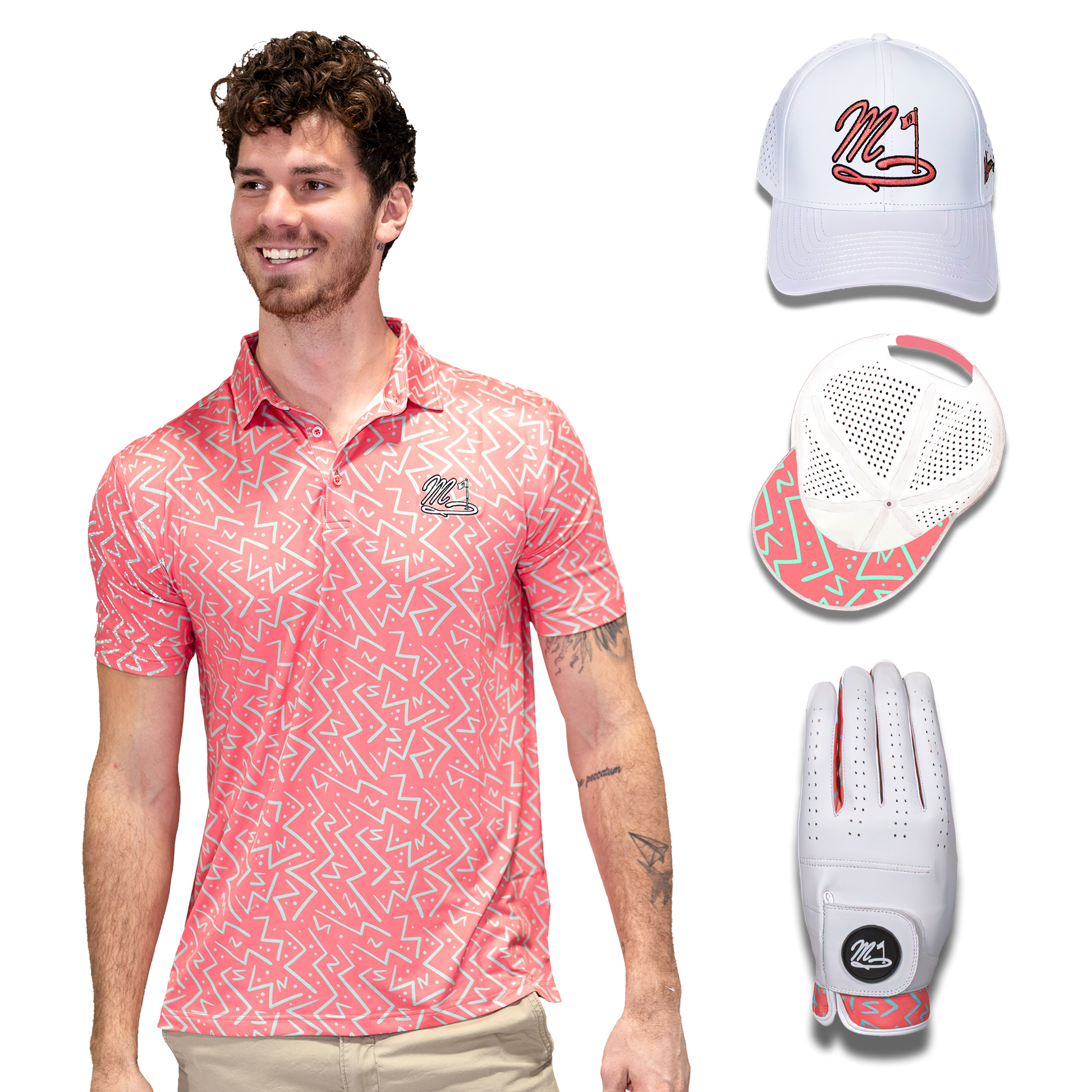 Get the most bang for your buck with the carefully curated Mathew John Golf bundles. This exclusive set includes a hand crafted shirt for a sleek on-course look, a high-performance glove for ultimate precision, and a signature hat to keep you cool, calm, and collected out on the course. Up your swagger with Mathew John Golf bundles.